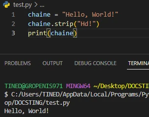 >>> nouvelle_chaine = chaine.strip("Hd!")