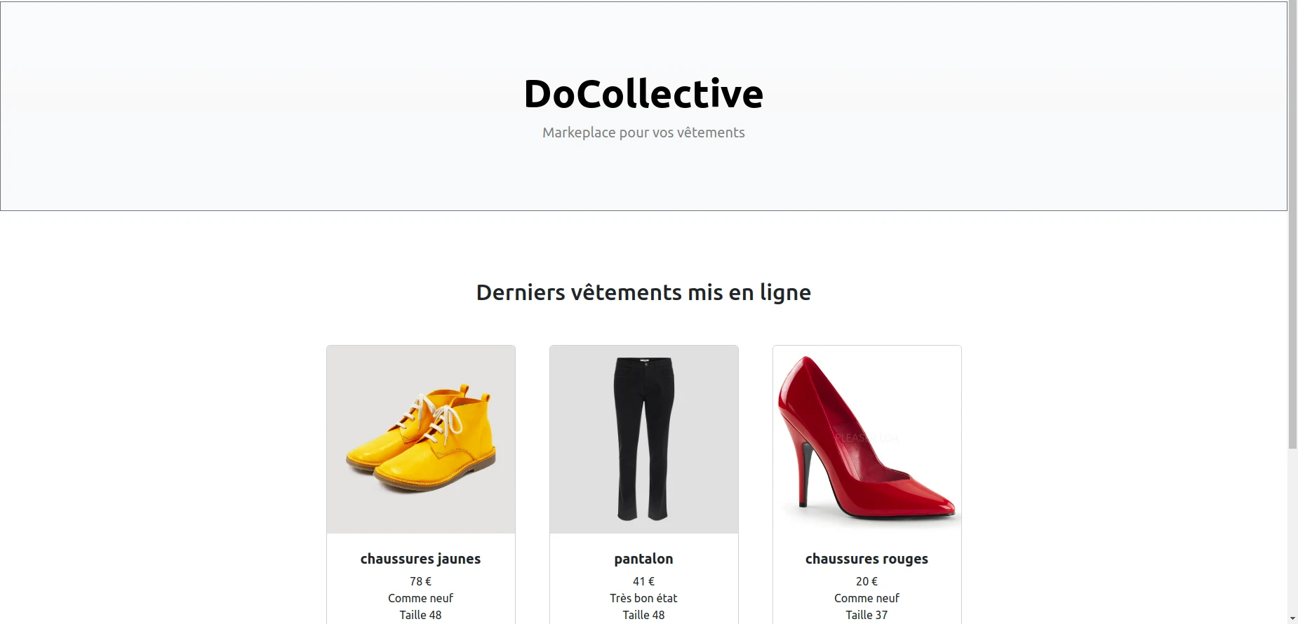 Le but de ce projet est de créer une marketplace pour échanger des vêtements qui ne vous conviennent plus.