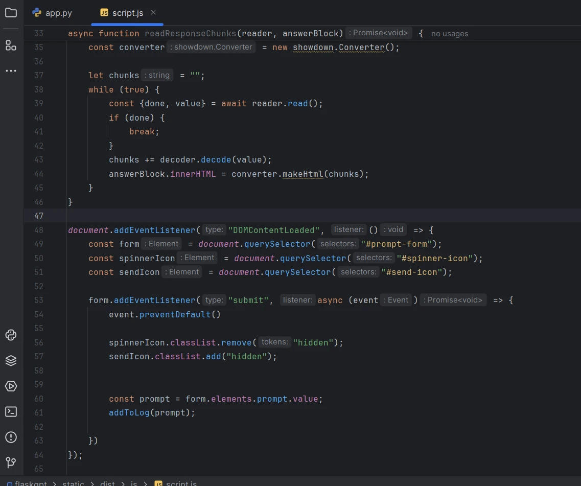 script.js:22 Fetch finished loading: POST "http://127.0.0.1:5000/prompt".