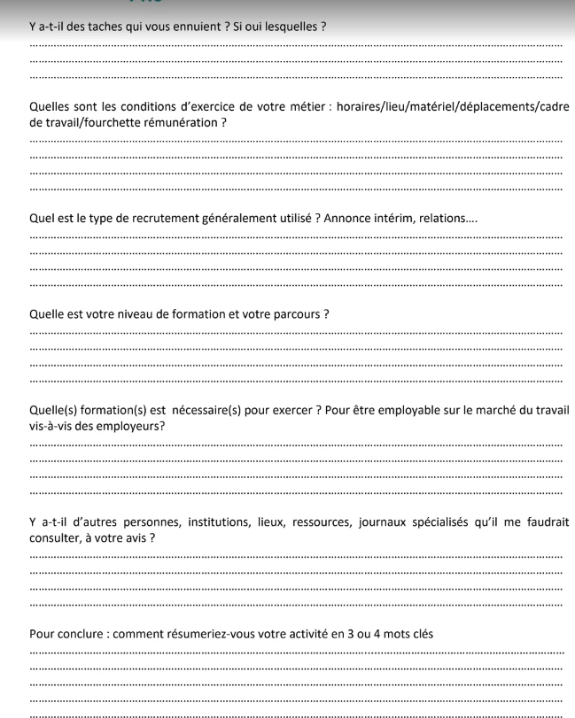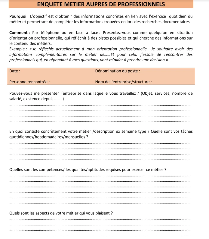 L'objectif est d'obtenir des informations concrètes en lien avec l'exercice quotidien du métier.