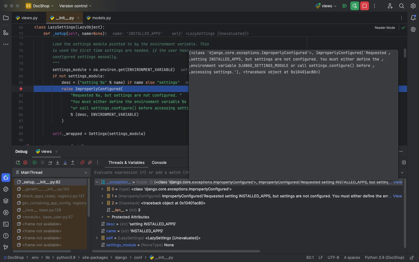 Le debug que vous avez envoyé en capture d'écran ne semble pas avoir été fait de la bonne façon non plus car Django est seulement mal configuré.
