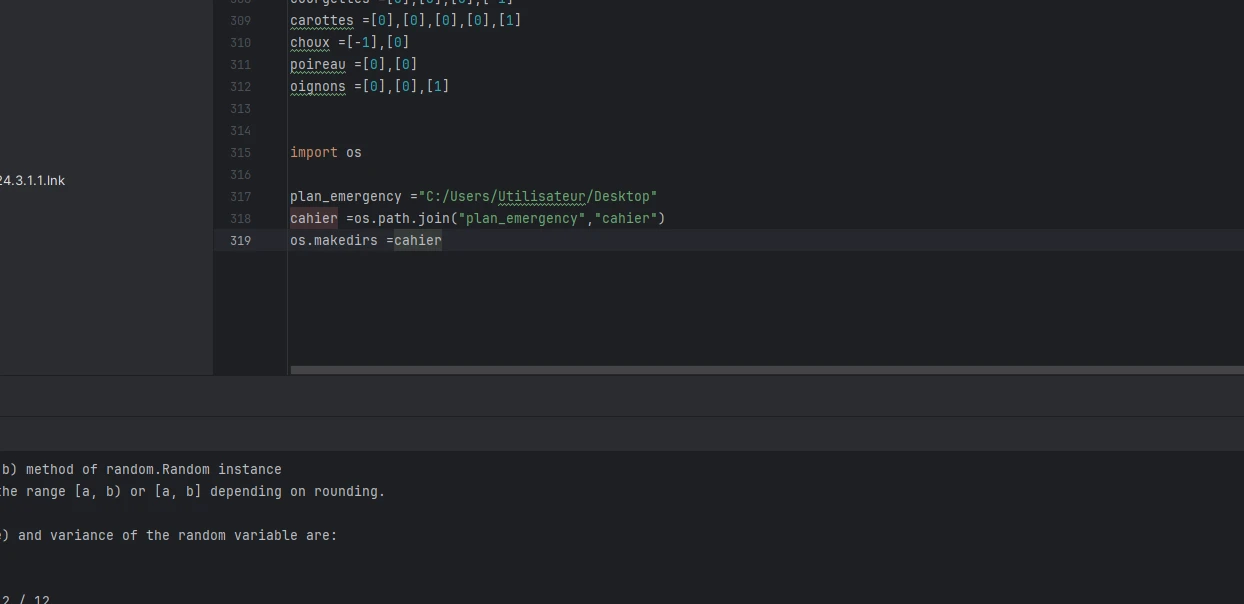 Je voudrais créer des fichiers et dossiers python. Comme convenu, j'utilise les fonctions "os.path.join","makedirs" ou "mkdir". le script s'execute correctement mais je ne trouve pas de fichier correspondant a ceux que j'ai créé sur pycharm en parcourant la page.