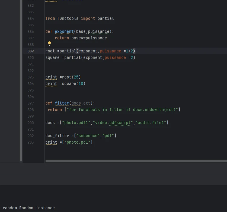 Bien que l'execution pycharm affiche "code 0'", il y a une erreur lorque je fait l'exercice docstring, car pour recuperer les derniers elements de la liste, il faut toujours utiliser -1 au debut puis 0 après (ce qui est plutot l'inverse sur pycharm qui m'affiche "code reussi 0").