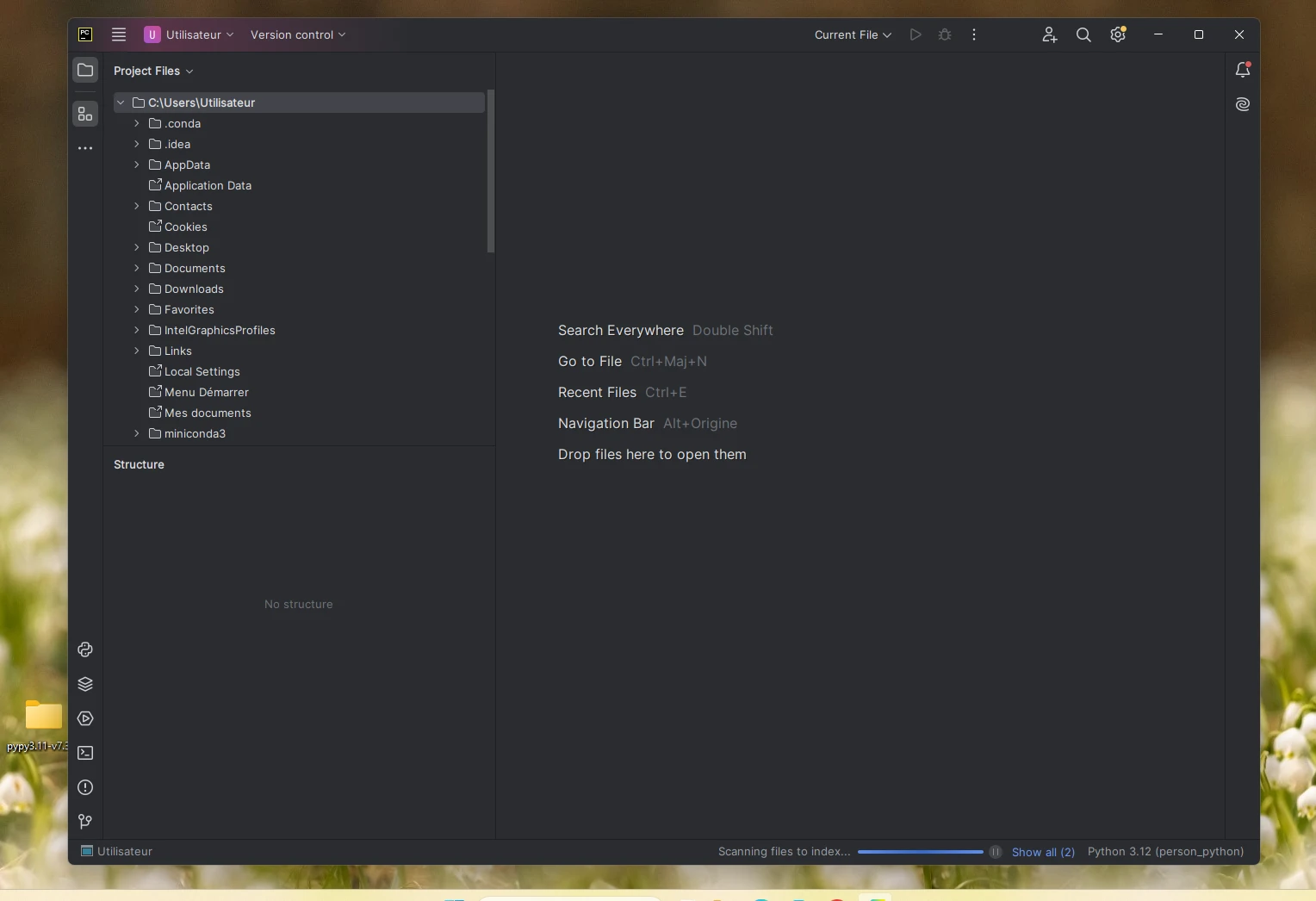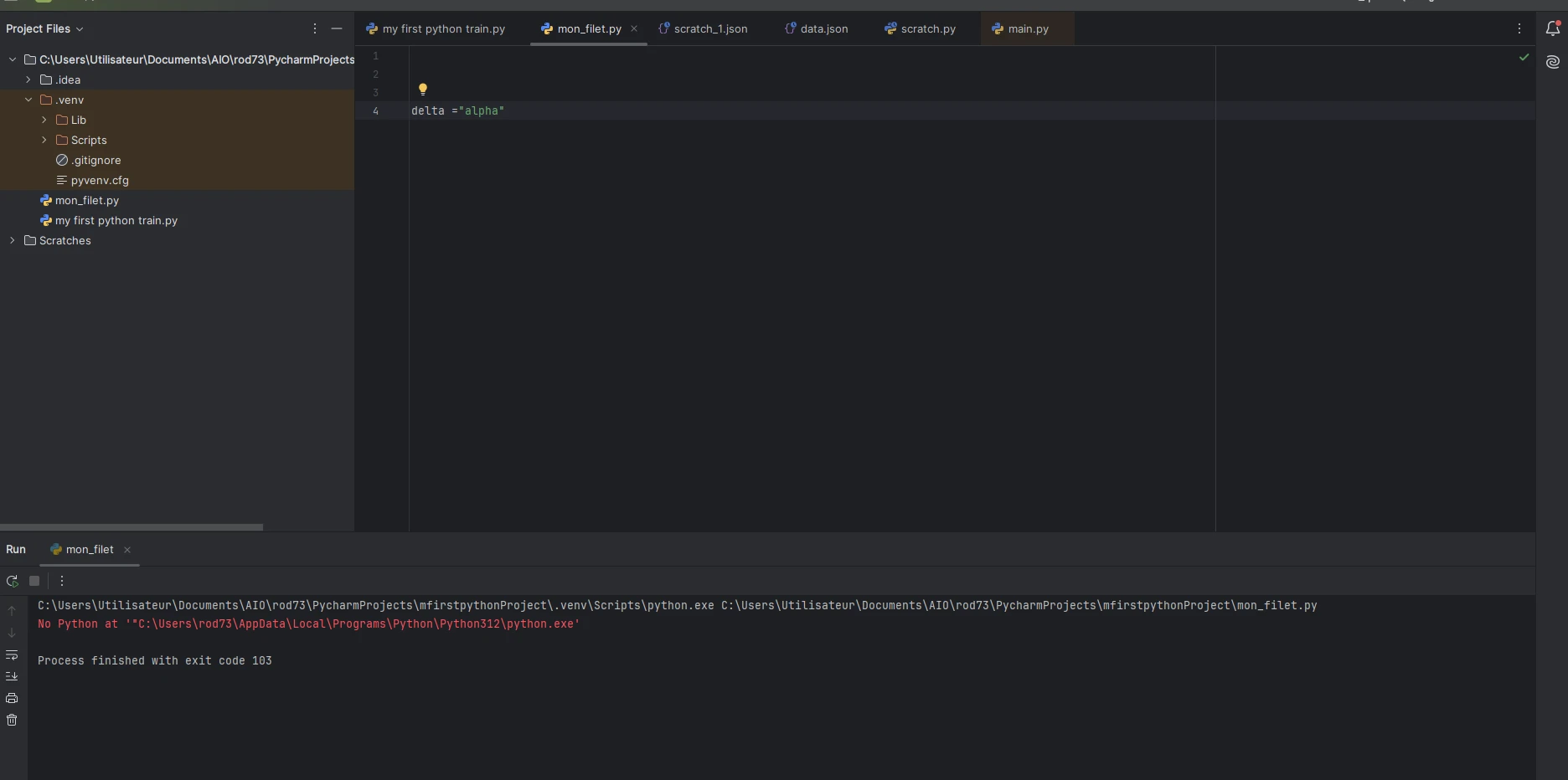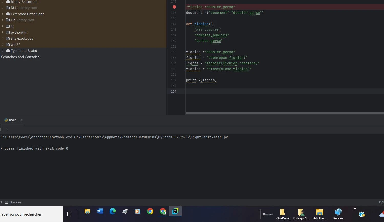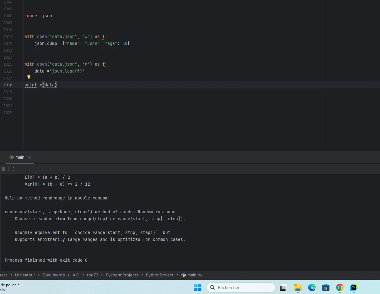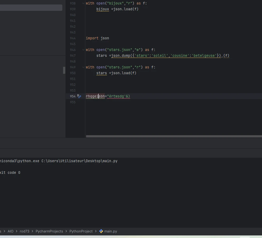 Quand je rouvre Pycharm, la page est vierge et je dois donc écrire du nouveau code.