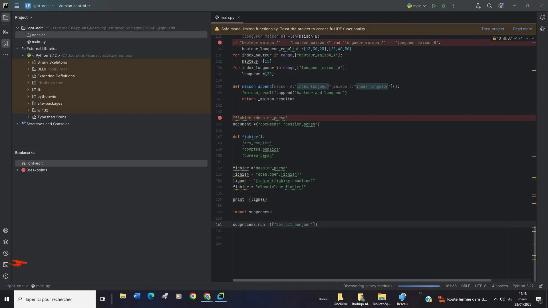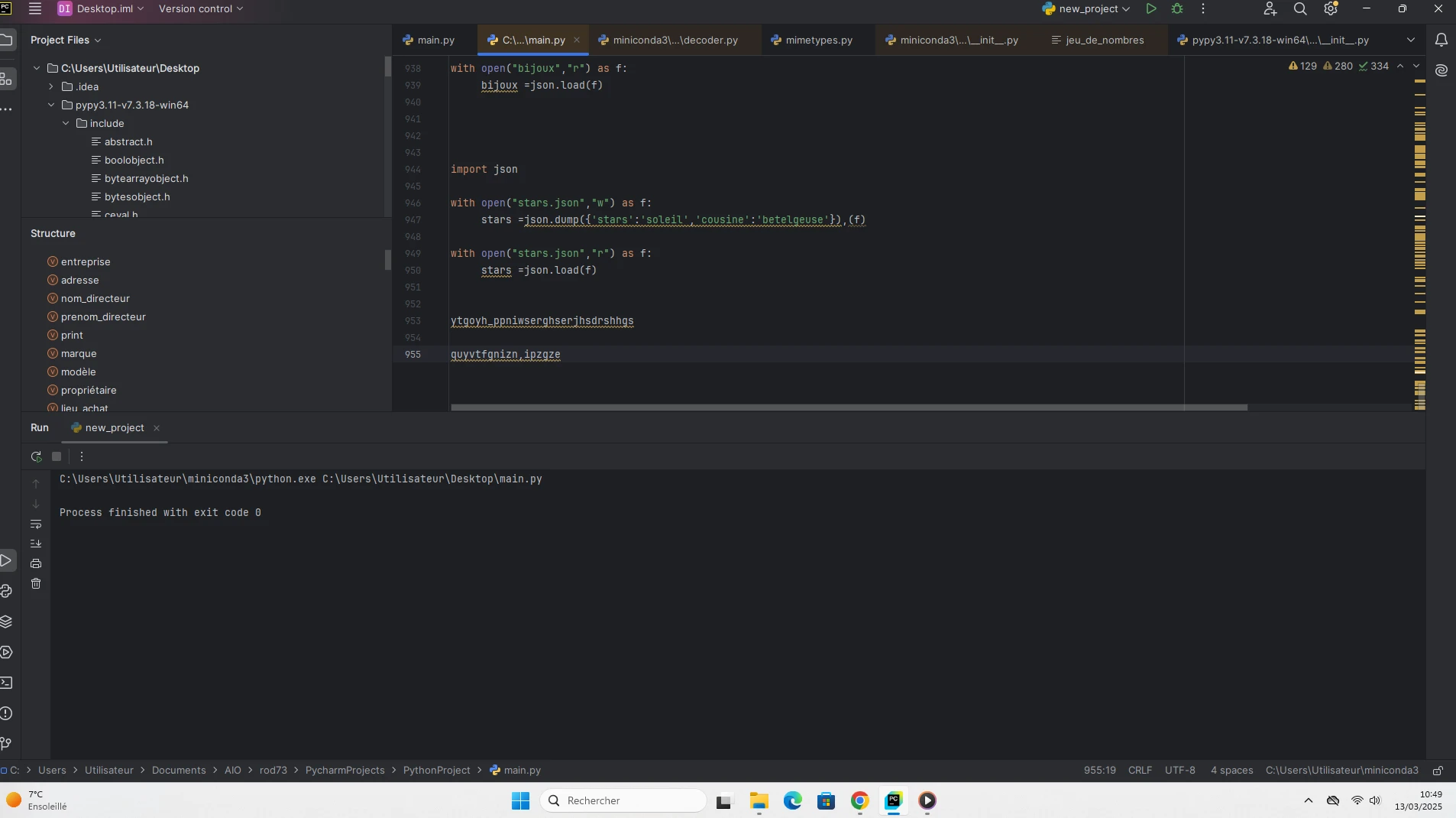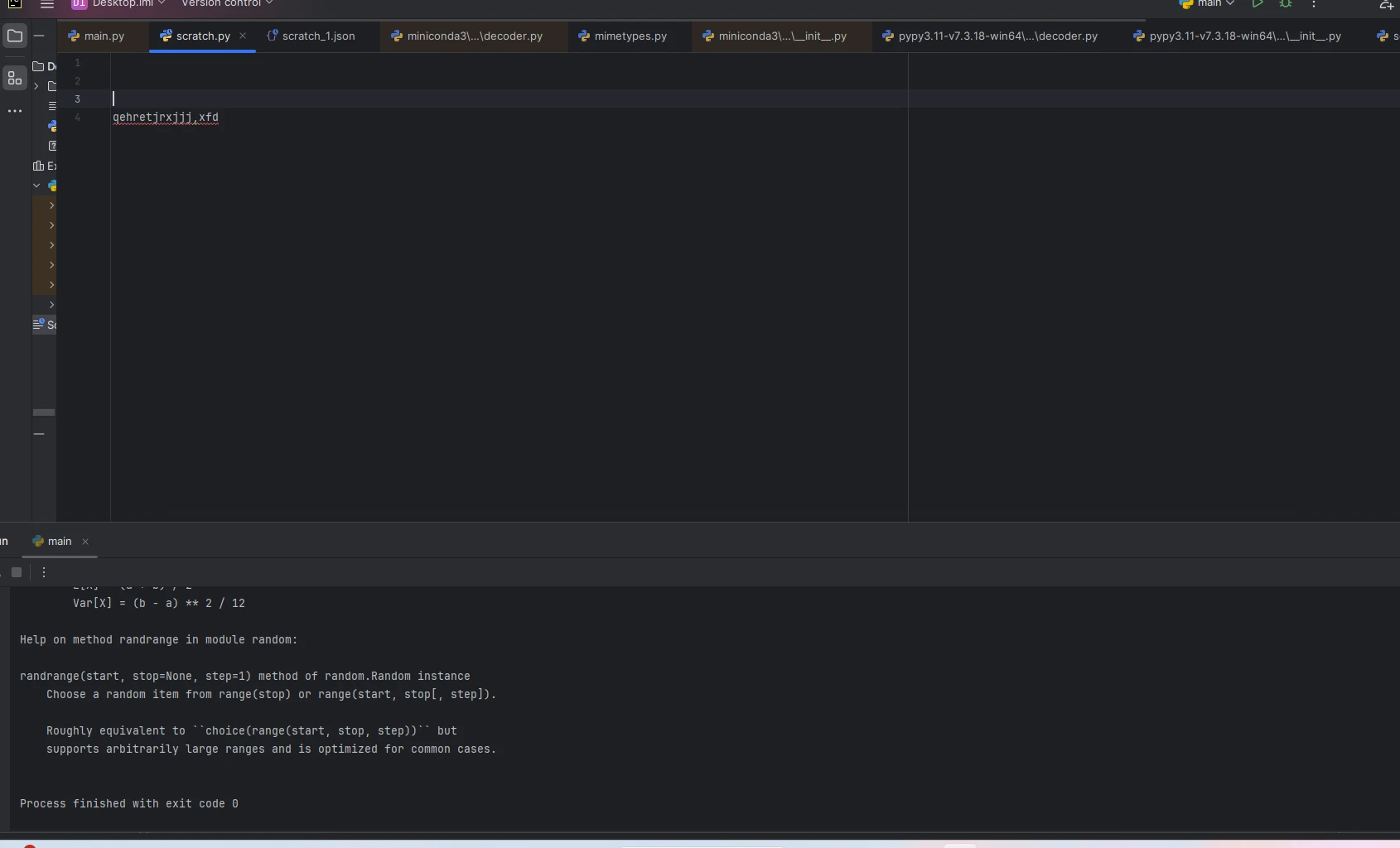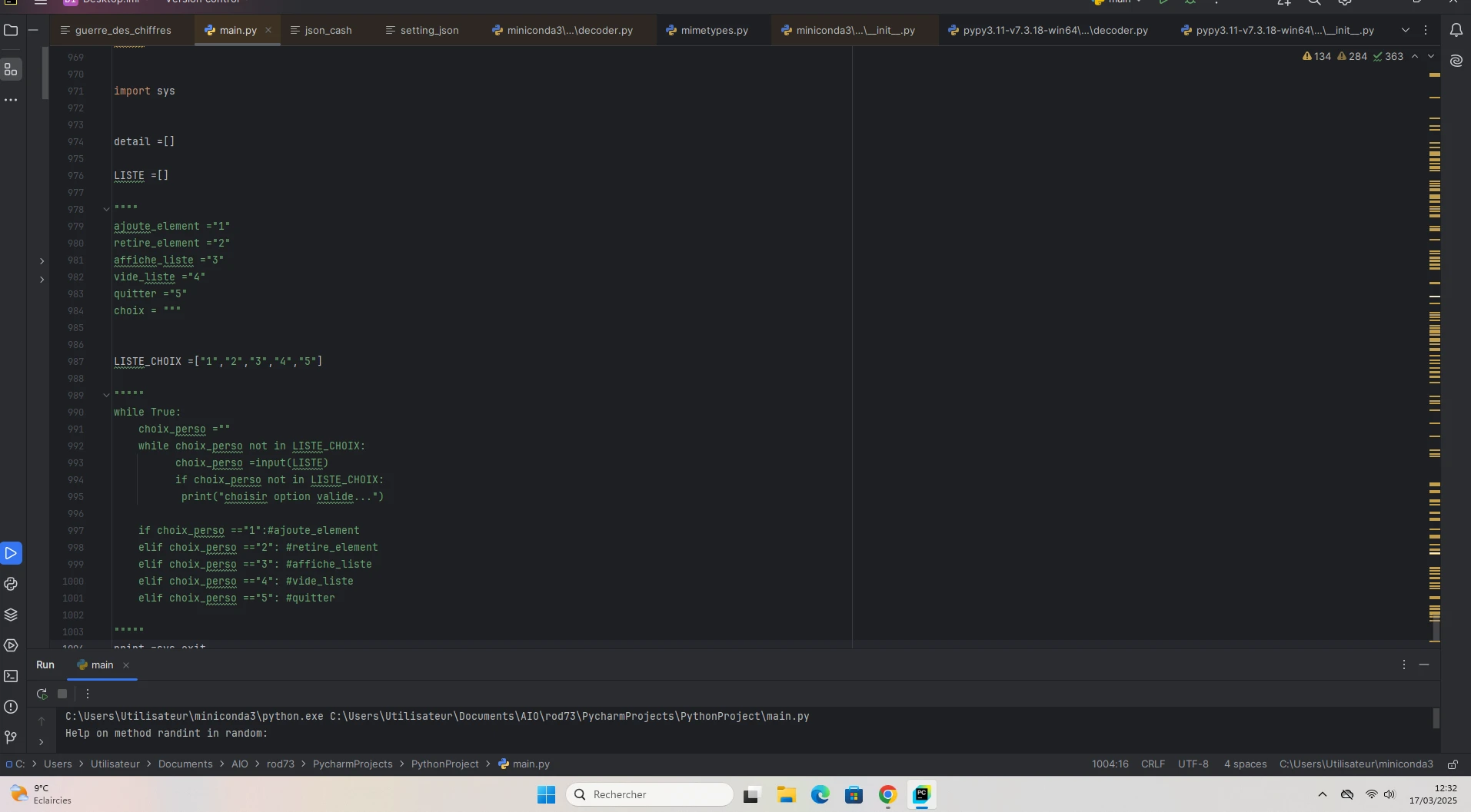 Quand je rouvre Pycharm, la page est vierge et je dois donc écrire du nouveau code.