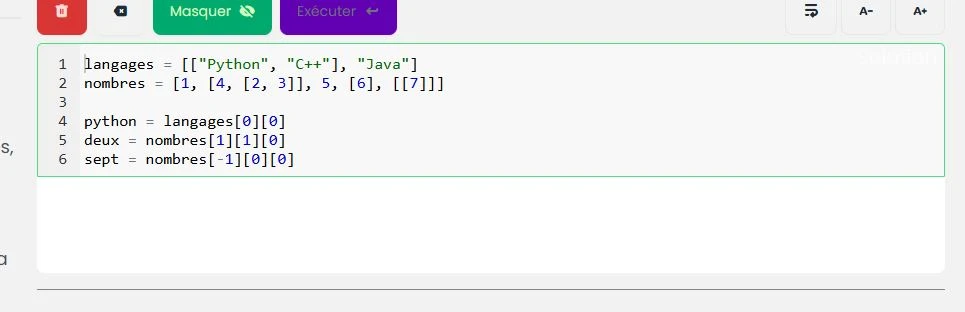langages = [["Python", "C++"], "Java"]