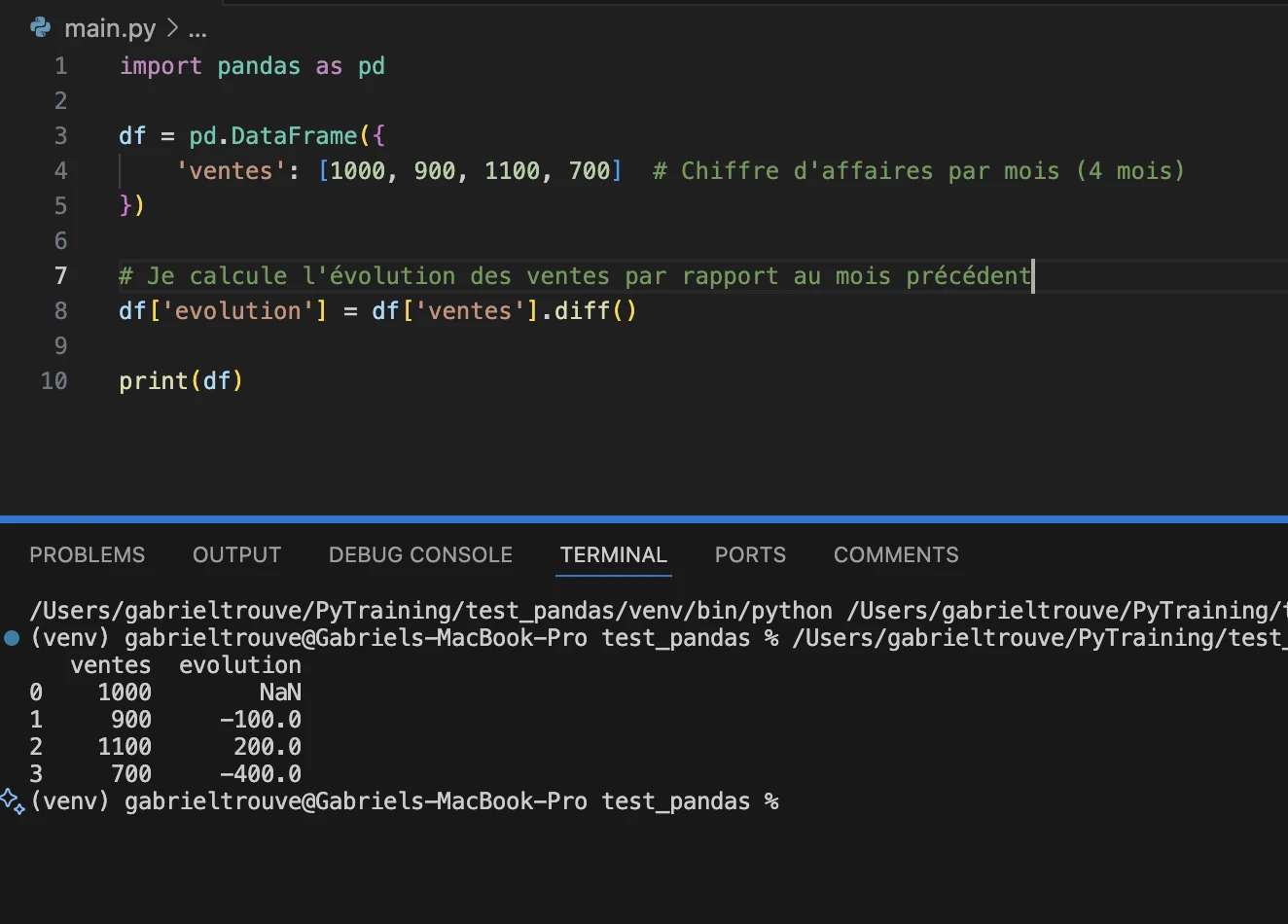 En fait, la fonction diff() permet de calculer la différence entre chaque ligne et la ligne précédente dans un DataFrame.