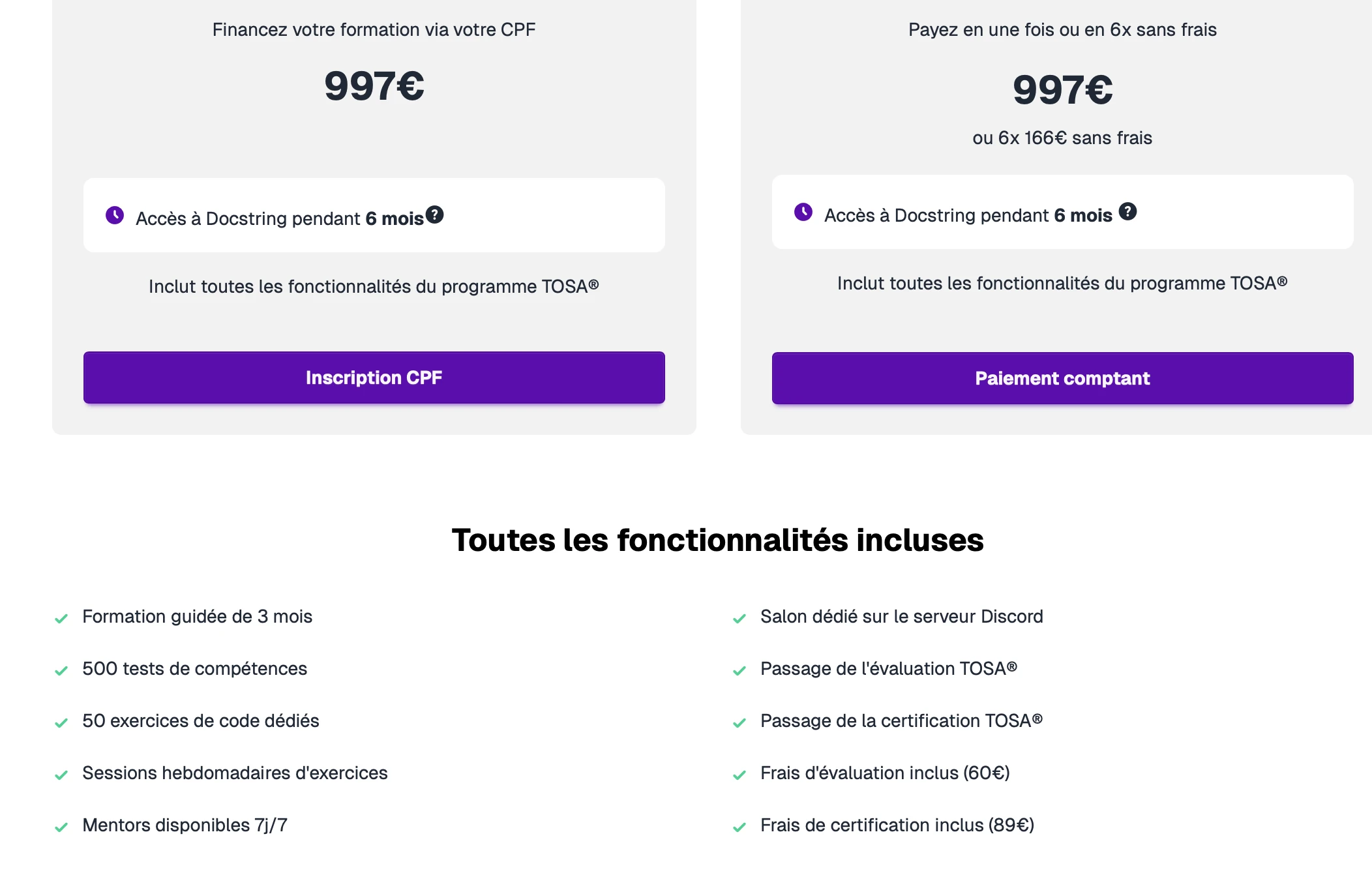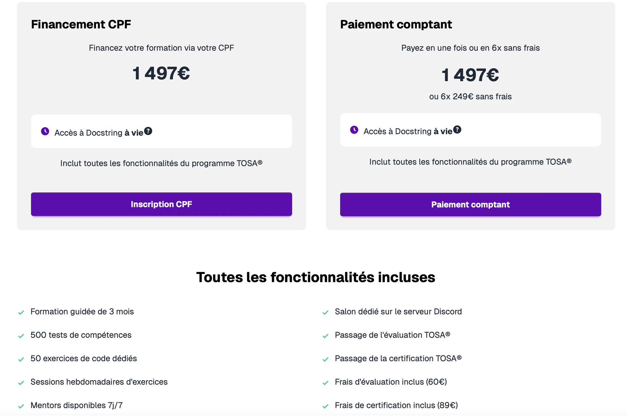 Avec notre formule, tu as accès aux tests de compétences, quiz, exercices sur Docstring, et à l'évaluation + certification TOSA :).