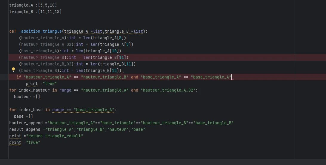 En m'inspirant de l'exercice "additionner deux matrices" sur docstring, j'ai essayé de créer un programme avec deux triangles, mais le code est toujours erroné. Ou est l'erreur ?