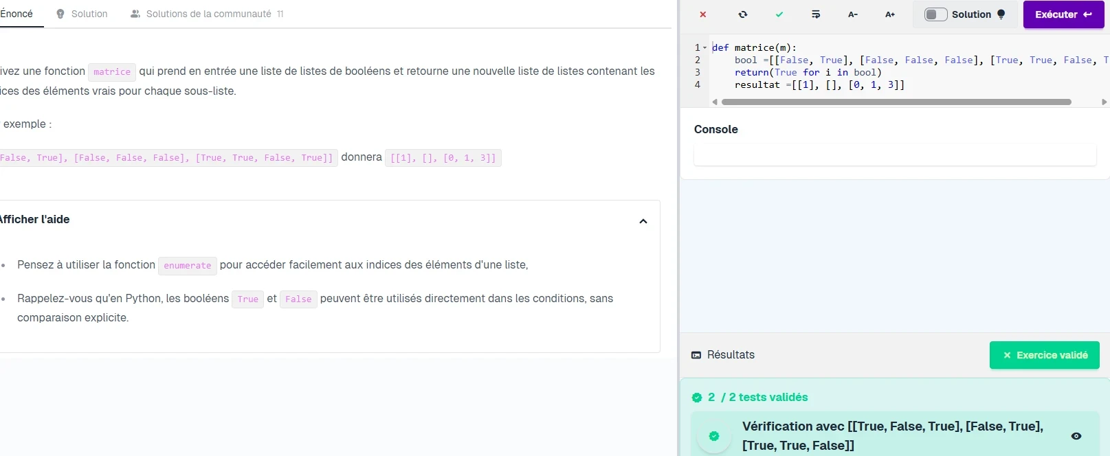 resultat =[[1], [], [0, 1, 3]]jamais exécuté