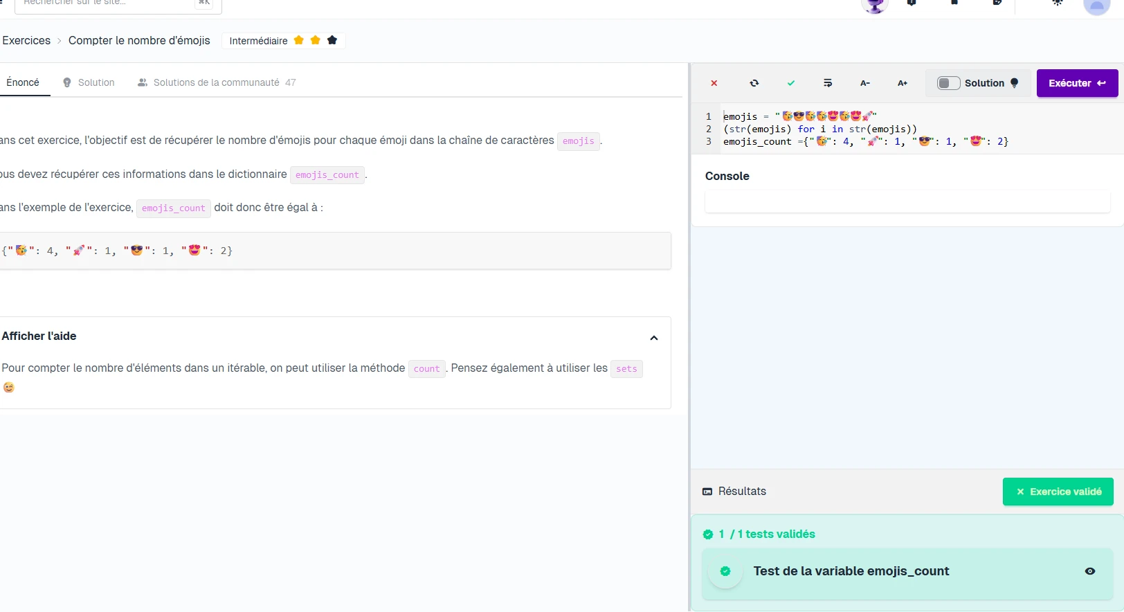 Et il me semble que le code est incomplet. Je t'invite à regarder la solution. : https://www.docstring.fr/formations/exercices/4/?tab=solution