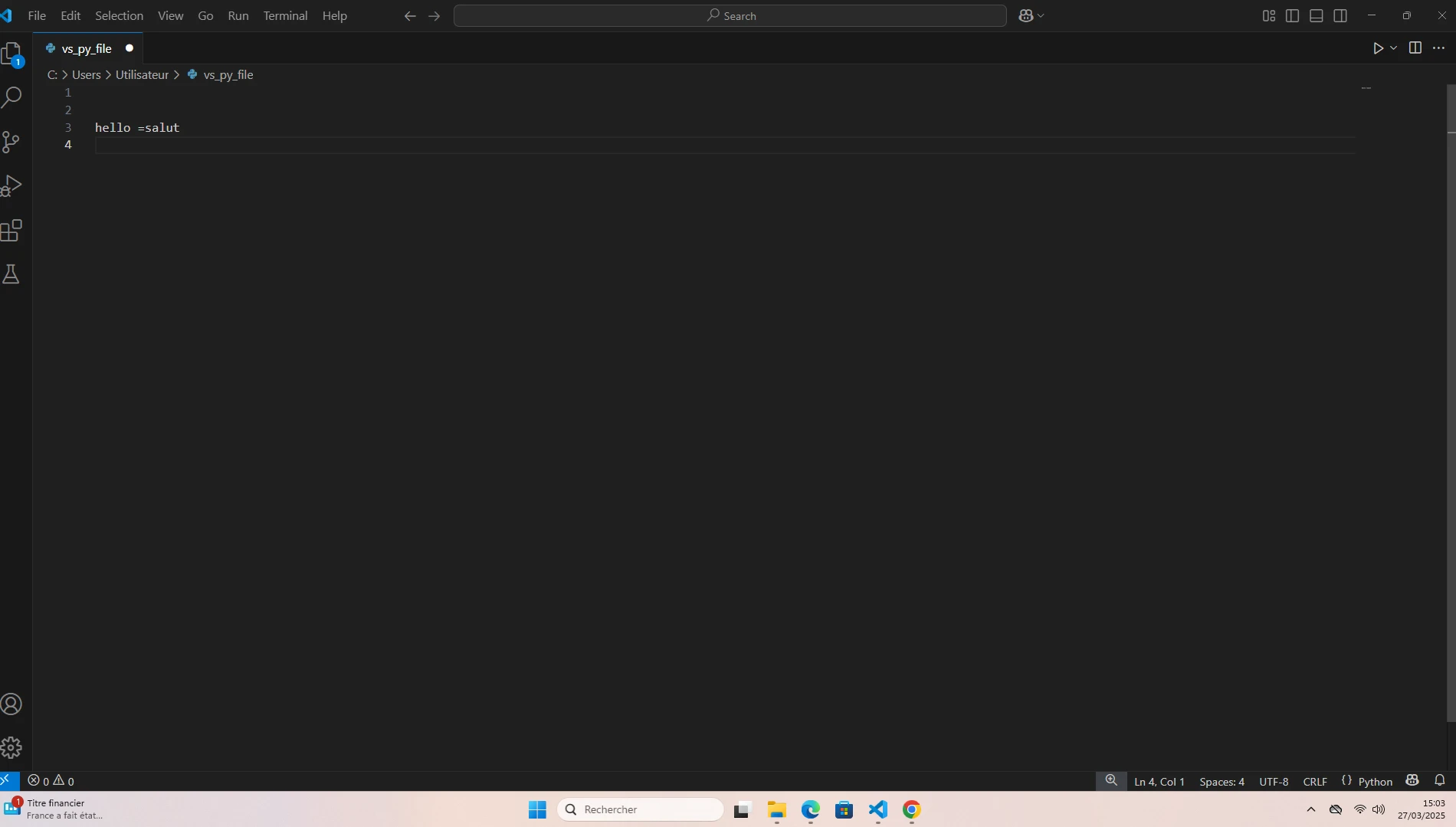 Regarde la formation qui montre comment utiliser VS Code, essaie de lancer un script tout simple et ne va pas plus loin.