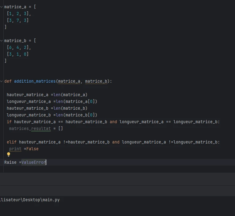 Mais à première vue je vois des Raise =ValueError et print =False