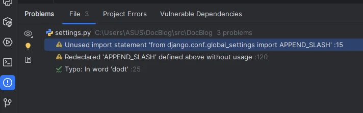 je n'arrive pas à ajouter le paramètre APPEND_SLASH dans le setting