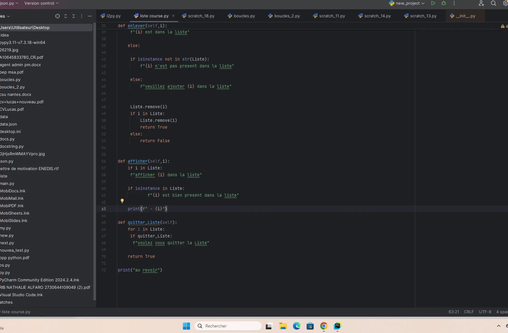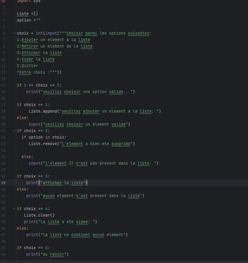 Alors, ton code a quelques soucis techniques qui l'empêchent de bien fonctionner. Le problème principal, c'est que tu compares choix_client (qui est une chaîne de caractères comme "1", "2"...) avec des nombres entiers (1, 2, 3...) dans tes conditions if. En Python, "1" n'est pas égal à 1, donc tes conditions ne se déclenchent jamais.