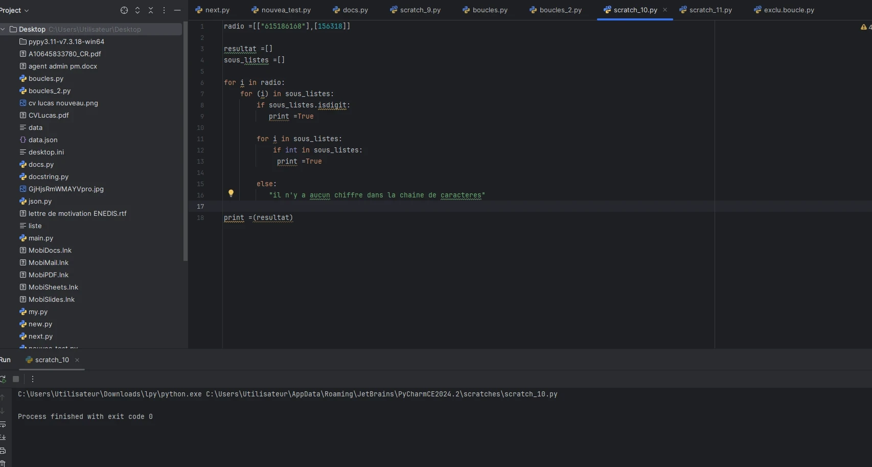 Mais ça ne va pas, tu utilises isdigit sur une liste.
