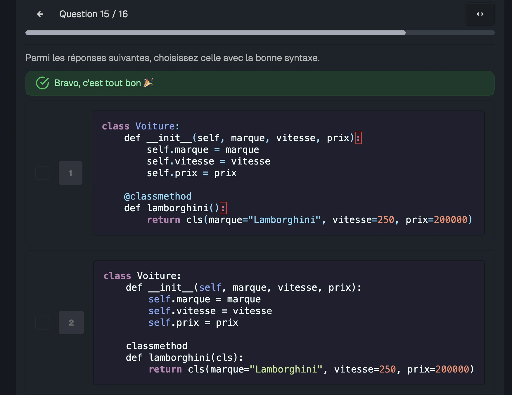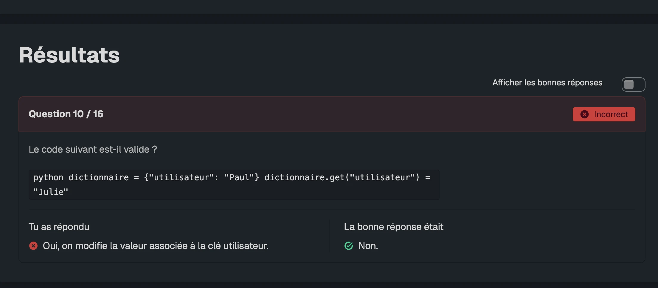 Mauvaise mise en forme du quiz Python intermédiaire