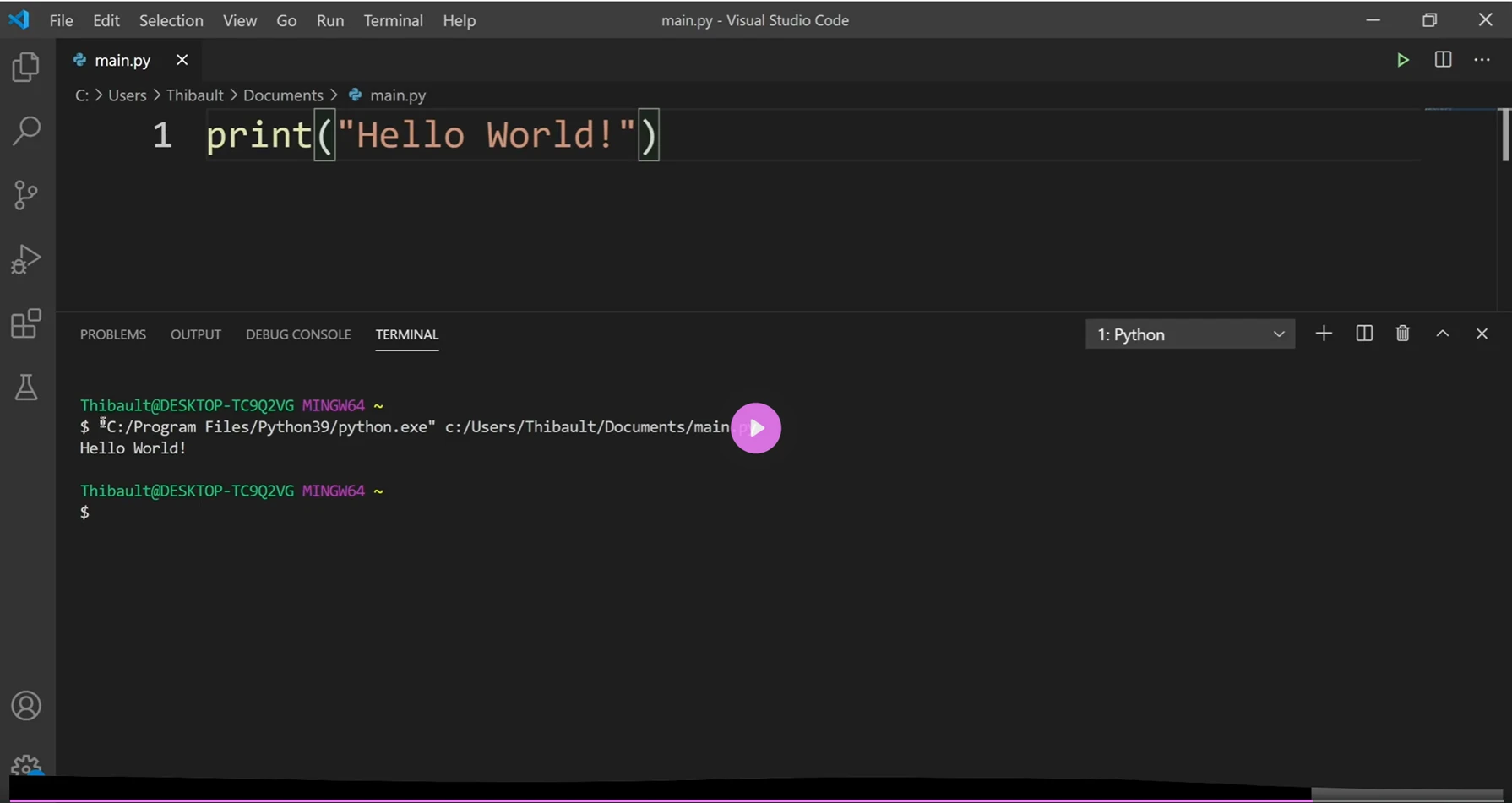 Et je fais comme tu le fais dans ta vidéo. j'appuie sur le bouton en forme de flèche, voir je selectionne "run python file in dedicated terminal"