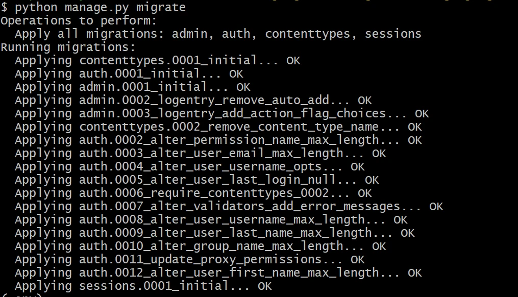 $ python manage.py migrate