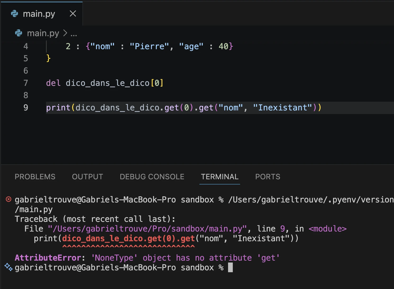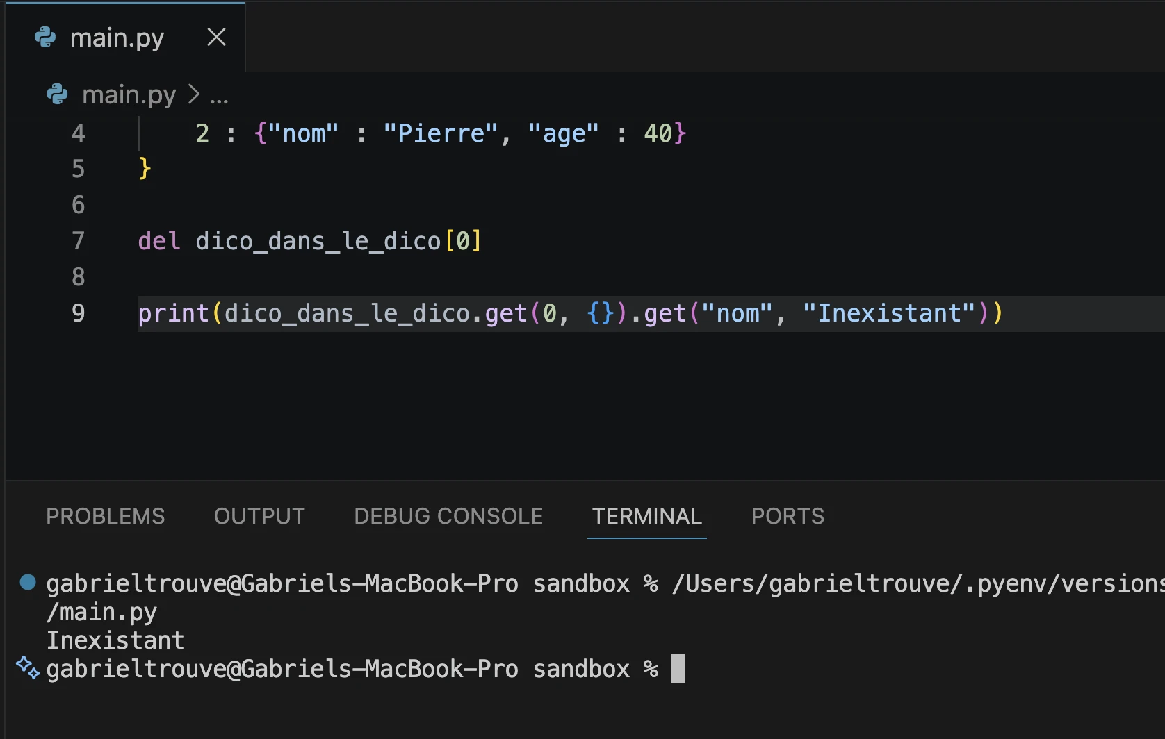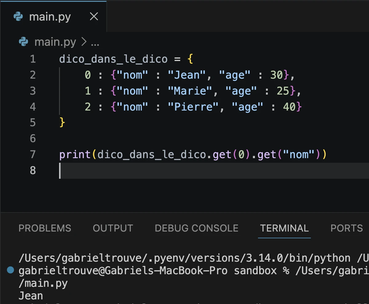 print(dico.get(0).get("prénom", "la clé n'existe pas "))