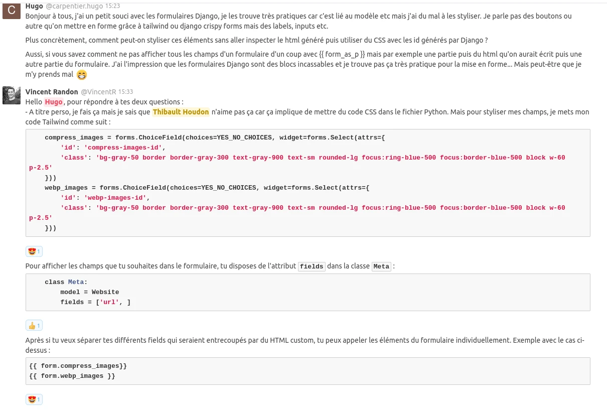 J'ai l'impression que les formulaires Django sont des blocs incassables et je trouve pas ça très pratique pour la mise en forme... Mais peut-être que je m'y prends mal 😁