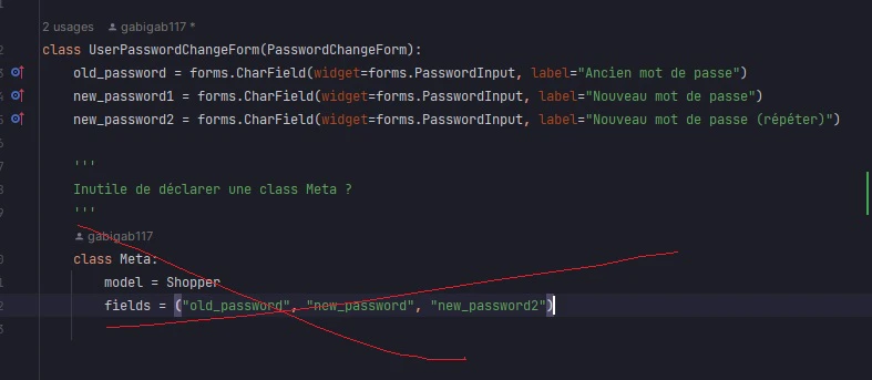 Quand on hérite de PasswordChangeForm, c'est inutile de définir une class Meta ? Car j'ai testé et on peut interchanger les champs et ça ne change rien.