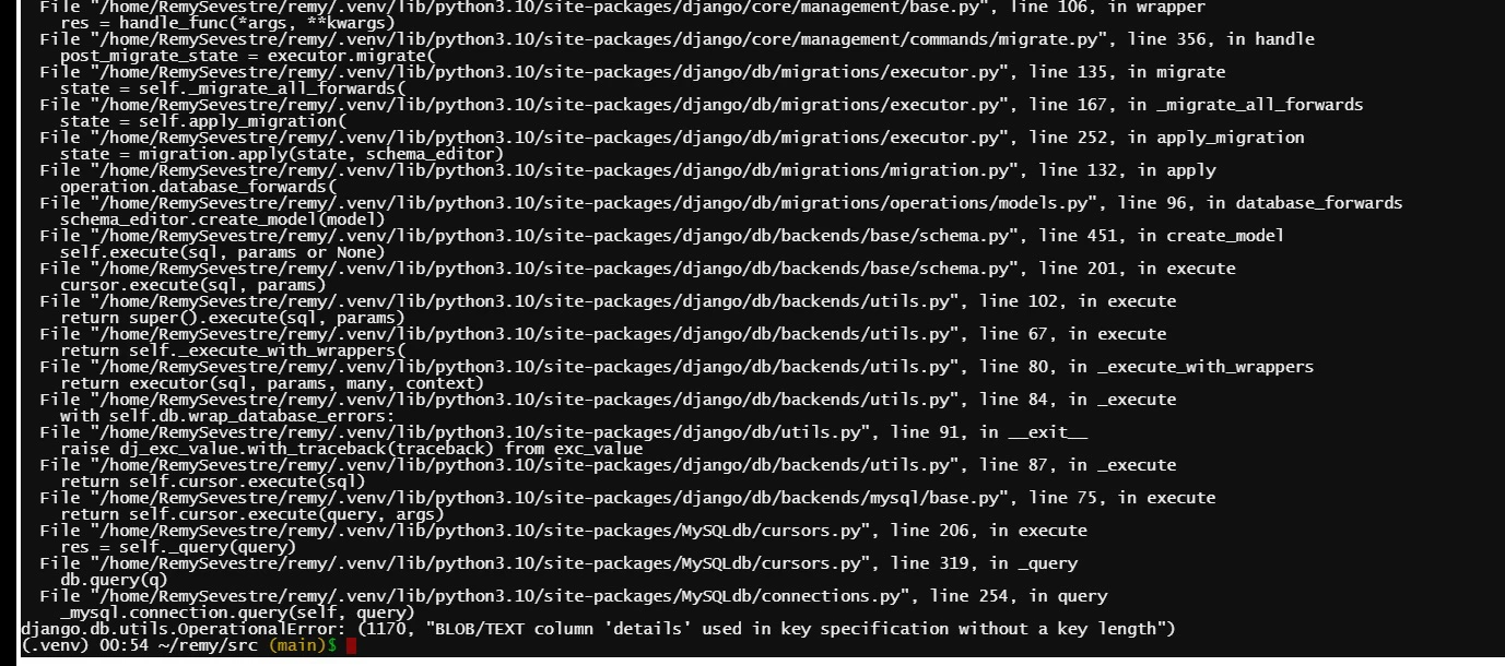 Voici les message quand je fais mes migrations.