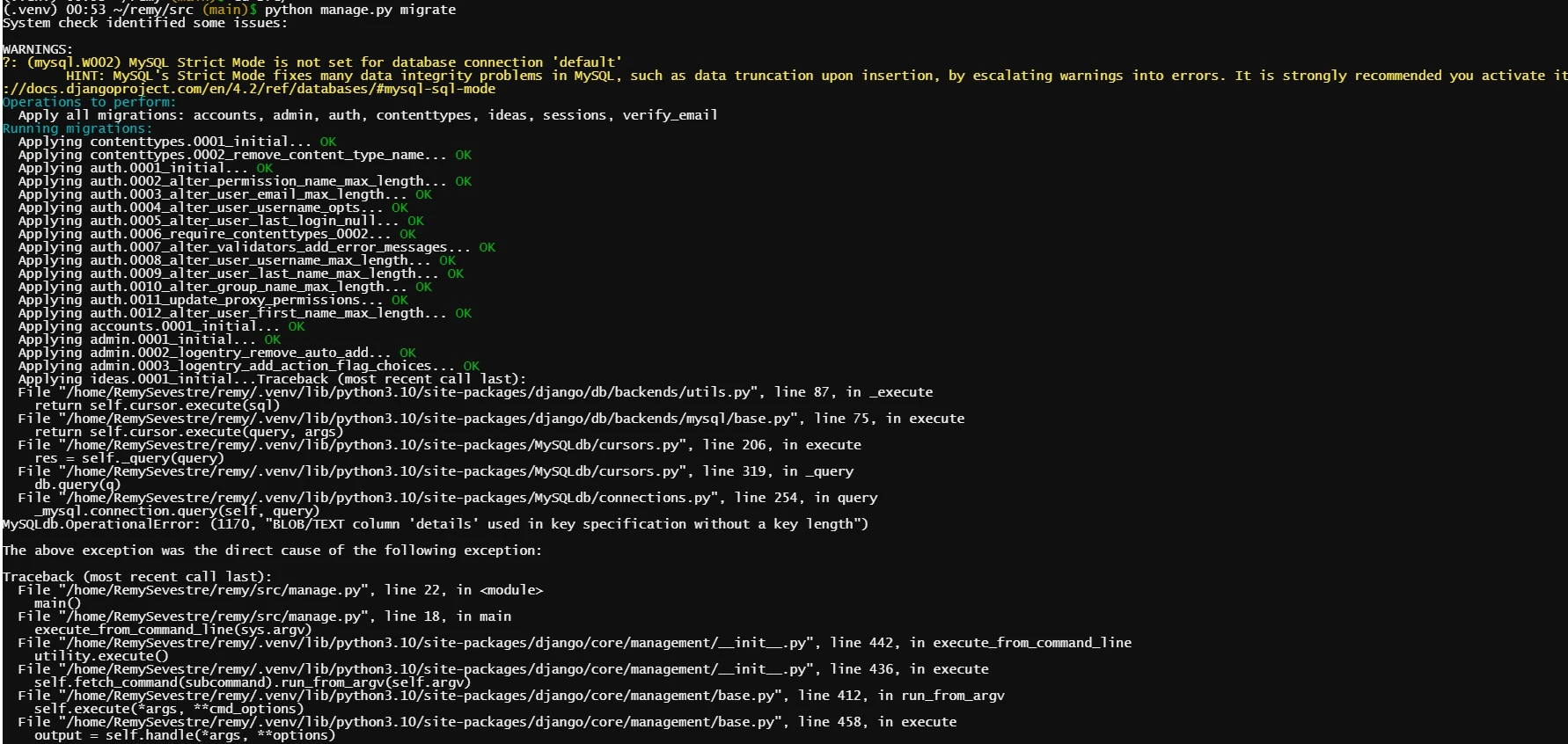 Actuellement si je vais sur l'app depuis mon url anywhere : (1146, "Table 'RemySevestre$idea4.ideas_idea' doesn't exist"). Donc on voit bien que cette table n'a pas été créée.