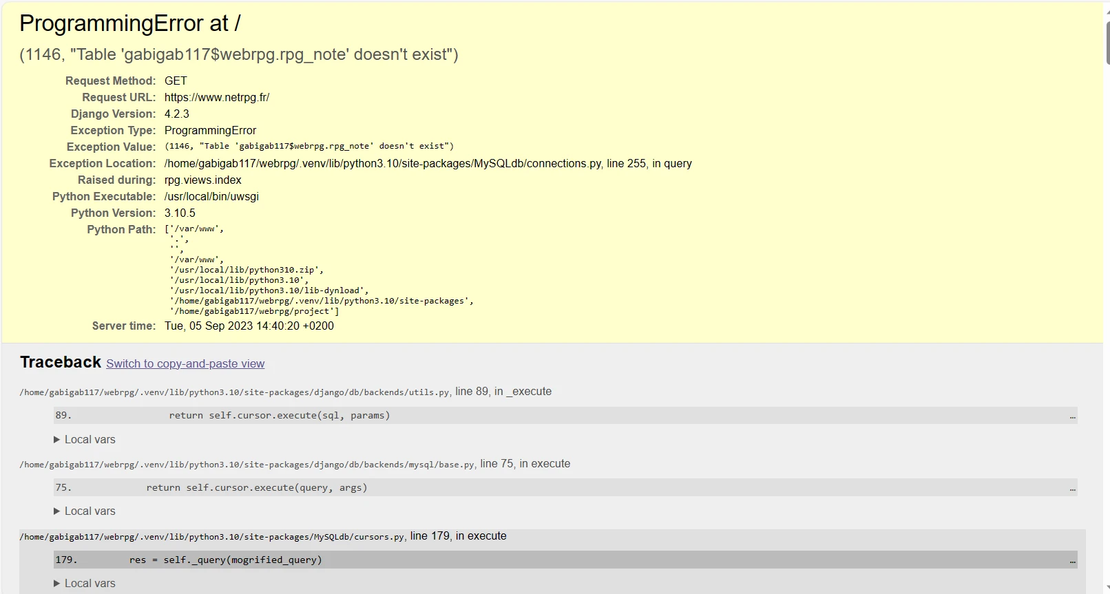 File "/home/gabigab117/webrpg/.venv/lib/python3.10/site-packages/MySQLdb/cursors.py", line 179, in execute