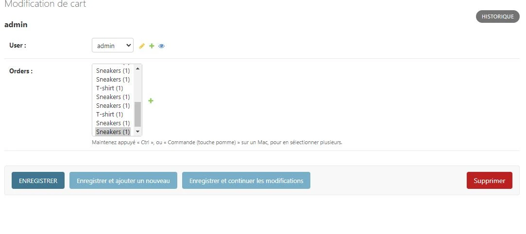 Quand je supprime le panier coté utilisateur tout se passe bien. Mais quand je supprime le panier coté administrateur, la suppression se fait mais le champ ordered ne passe pas à True, ce qui crée un bug coté utilisateur. après cette suppression coté administrateur, l'utilisateur peut créer un panier mais il sera vide, et impossible d'ajouter des articles. la page du panier s'affiche mais avec un compteur à zero. j'ai beau essayer de supprimer et recréer un panier coté utilisateur, j'ai toujours le meme bug, meme si j'efface les données de navigation, et que je relance le serveur. pour corriger ce bug, il faut aller dans l'interface administrateur et cocher la case ordered pour que le champ ordered passe à True. Après cette manipulation, on peut de nouveau créer un panier coté utilisateur. Donc mon problème est que je ne comprends pas pourquoi le champ ordered ne passe pas pas à True quand je supprime le panier coté administrateur, alors que a priori j'ai bien surchargé la méthode delete()... Une idée ?...
