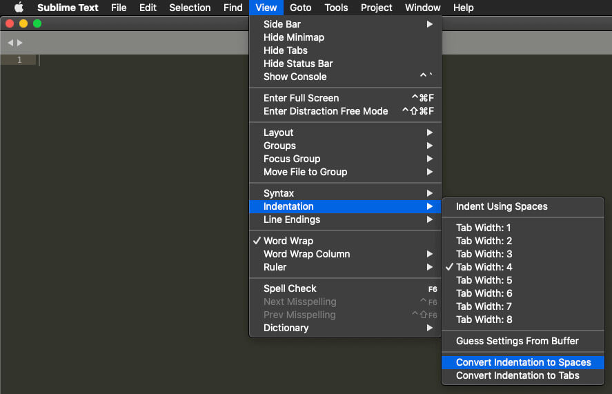 Allez dans View > Indentation > Convert Indentations to Spaces