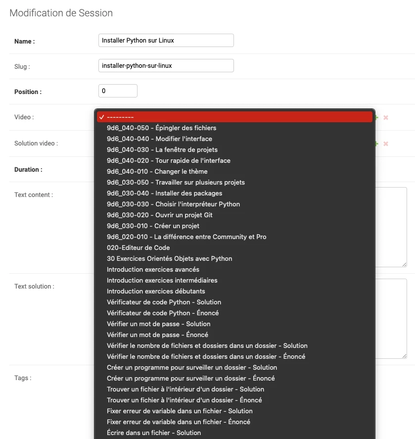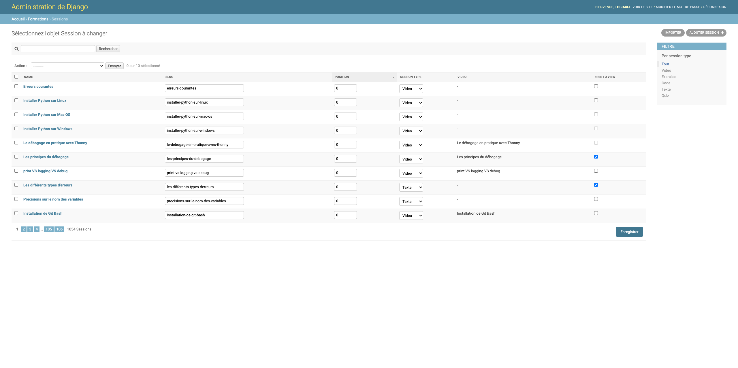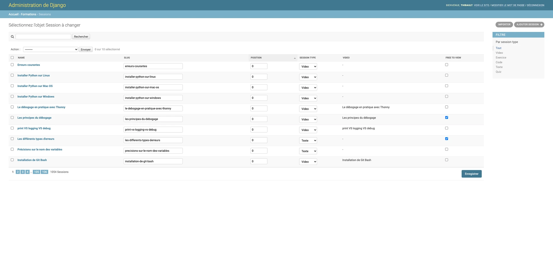 C'est grâce à cet attribut search_fields que je peux filtrer les vidéos par leur nom dans l'interface d'administration de mon modèle Session.