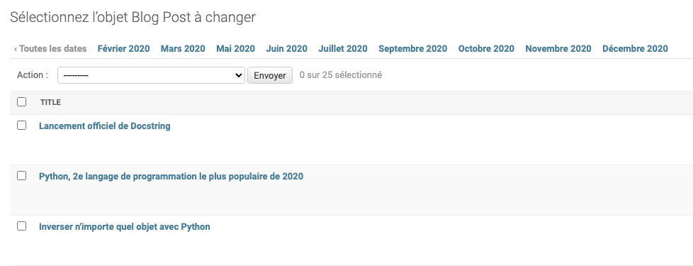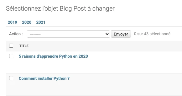Un autre attribut très intéressant, date_hierarchy, nous permet de filtrer les articles par année, mois et jour.