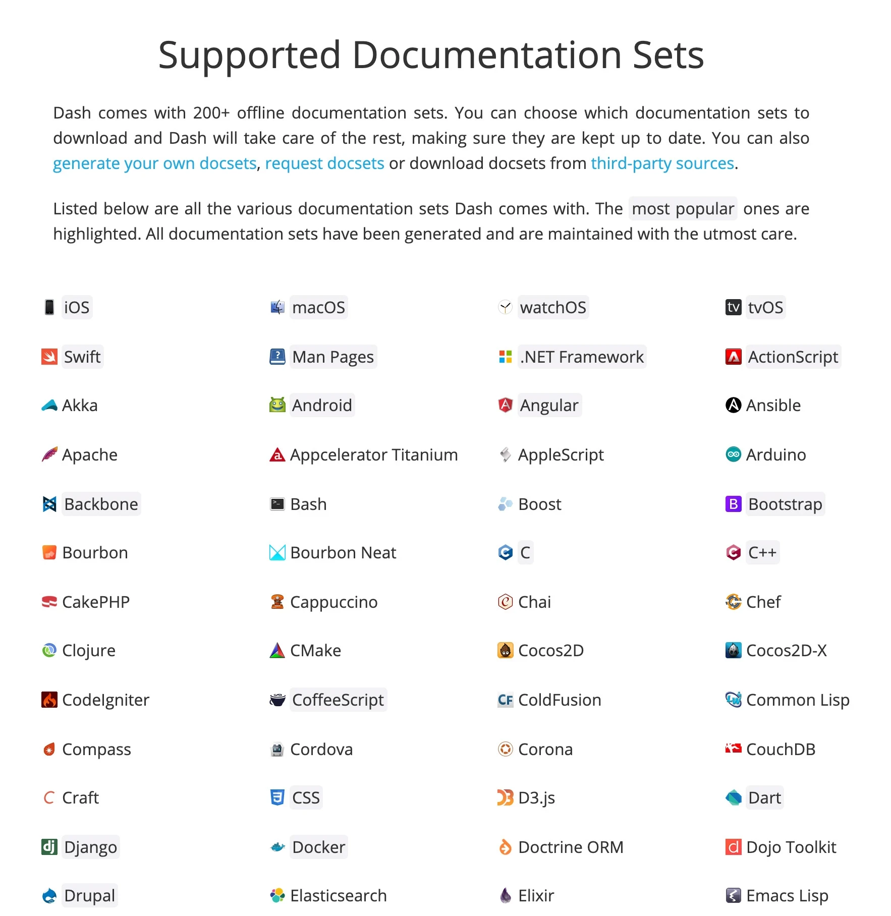 Pour les utilisateurs de Windows et Linux, vous pouvez utiliser à la place Zeal qui est très similaire dans son fonctionnement.