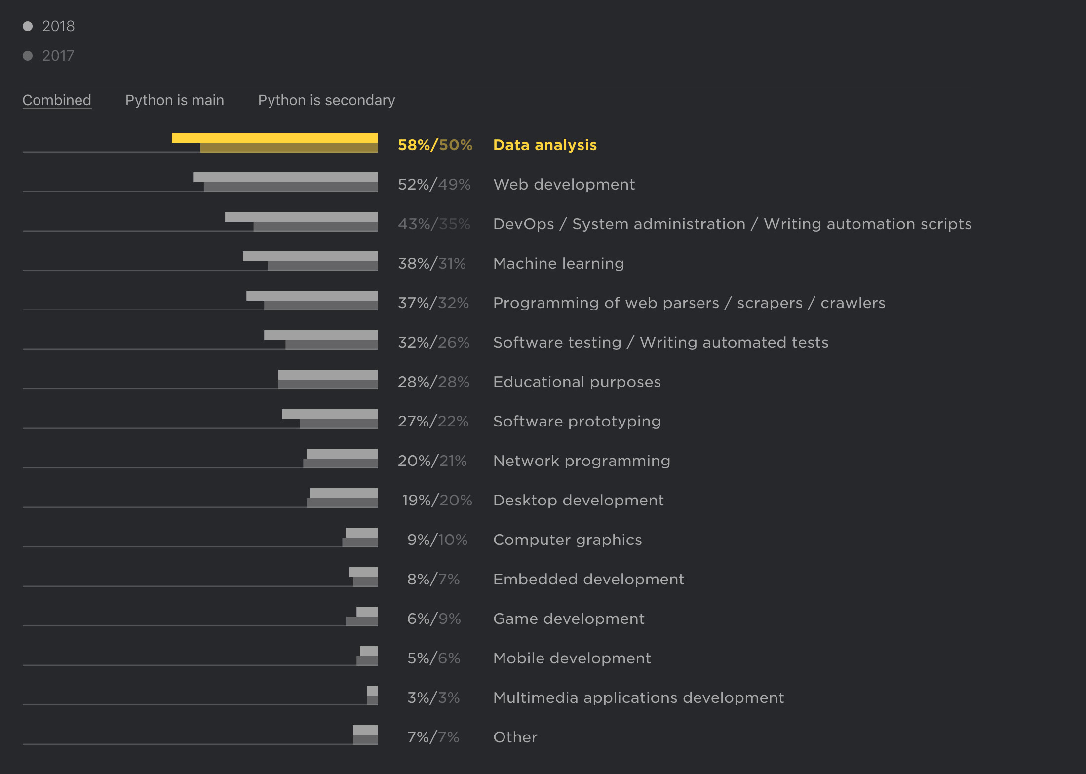 Analyse de données, développement web, administration réseau, machine learning, deep learning et même les effets visuels (je vous en parle ici), on peut dire que Python couvre de nombreux domaines qui ont le vent en poupe ! Si Python est aussi populaire c'est donc bien parce que les domaines dans lesquels il excelle sont en demande. Et qui dit domaine en demande, dit salaires attrayant (j'en reparle plus bas, un peu de patience).