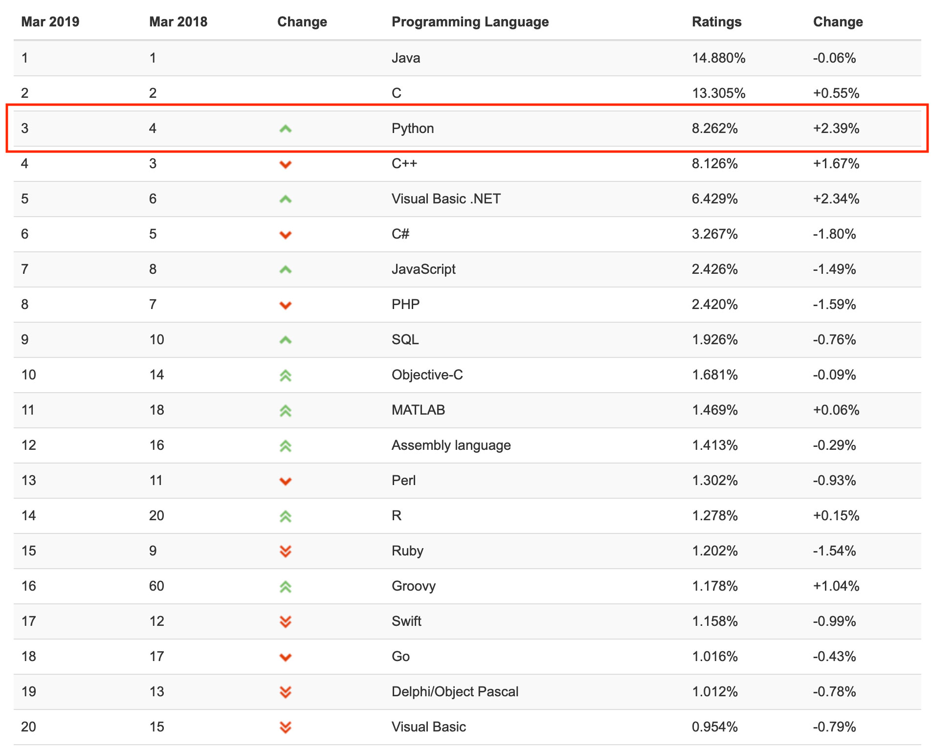 Tous les chiffres et enquêtes sont unanimes sur ce point : Python gagne en popularité d'années en années.