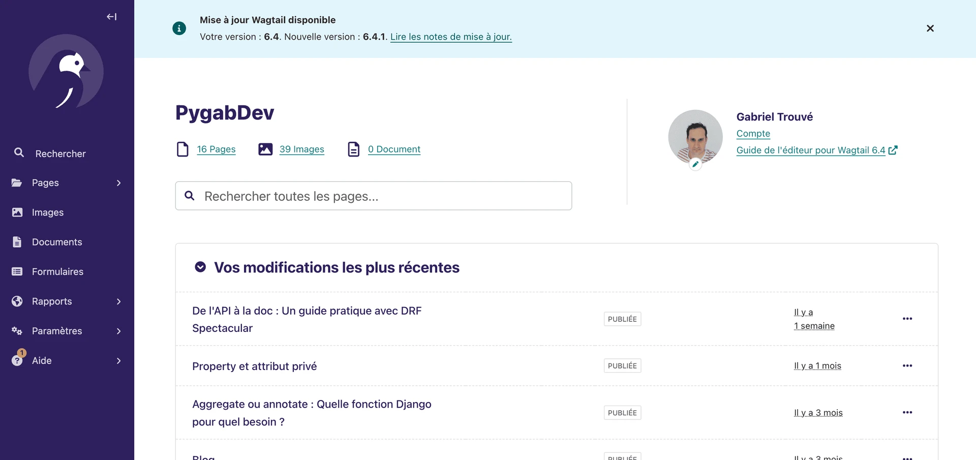 Développement de mon propre CMS avec Wagtail (un framework basé sur Django).