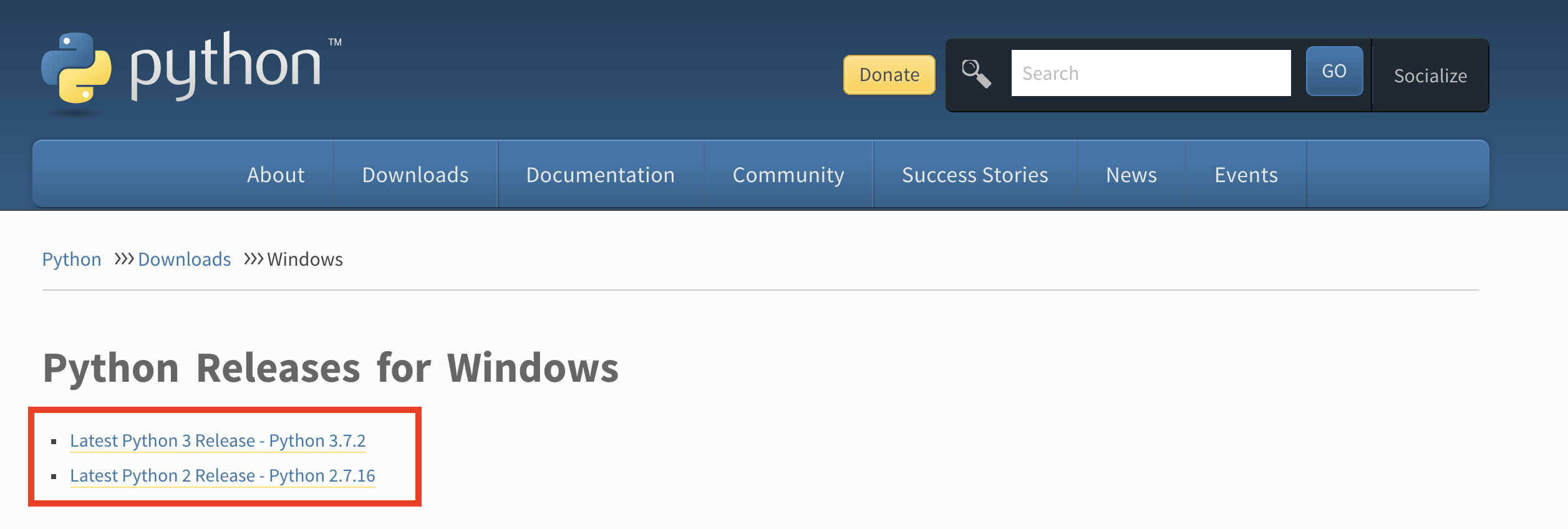 Vous trouverez un lien vers la dernière version de Python tout en haut de la page.