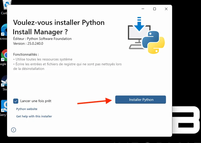 3. Installer Python via un exécutable