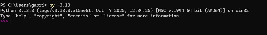 Pour ma part, j'ai installé Python 3.13.8, vous pouvez donc y accéder en spécifiant la version de Python : py -3.13.
