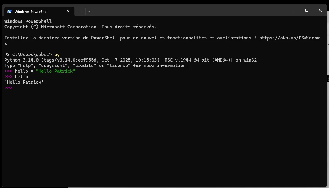 Interpréteur Python avec la commande py