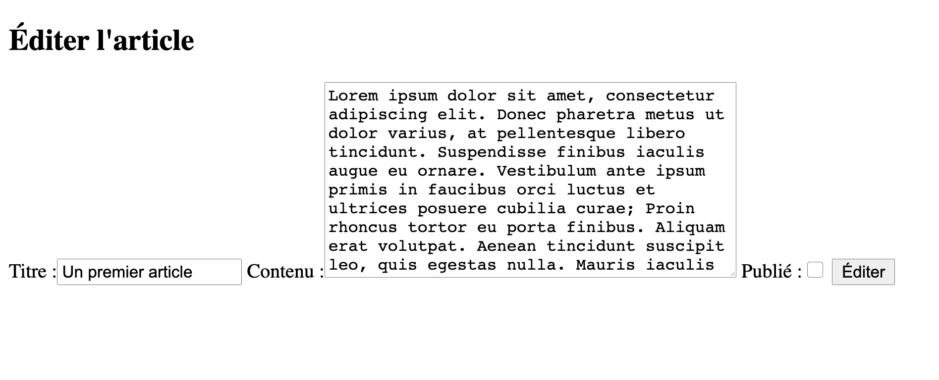 Et voilà, un beau formulaire pour éditer notre article (ce n'est pas vrai : ce formulaire est toujours hideux) :