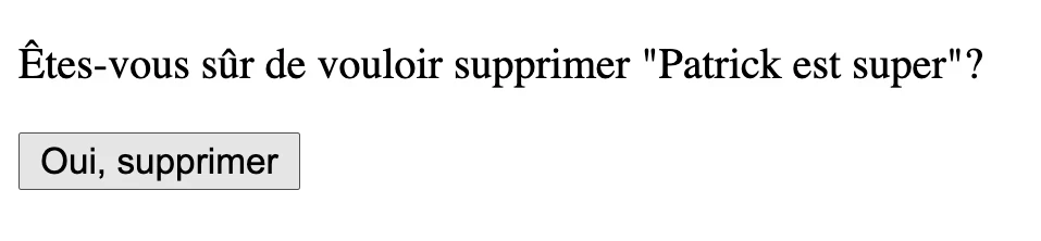 Sur cette page, on affiche tout simplement un formulaire qui nous demande si nous souhaitons réellement supprimer l'article.