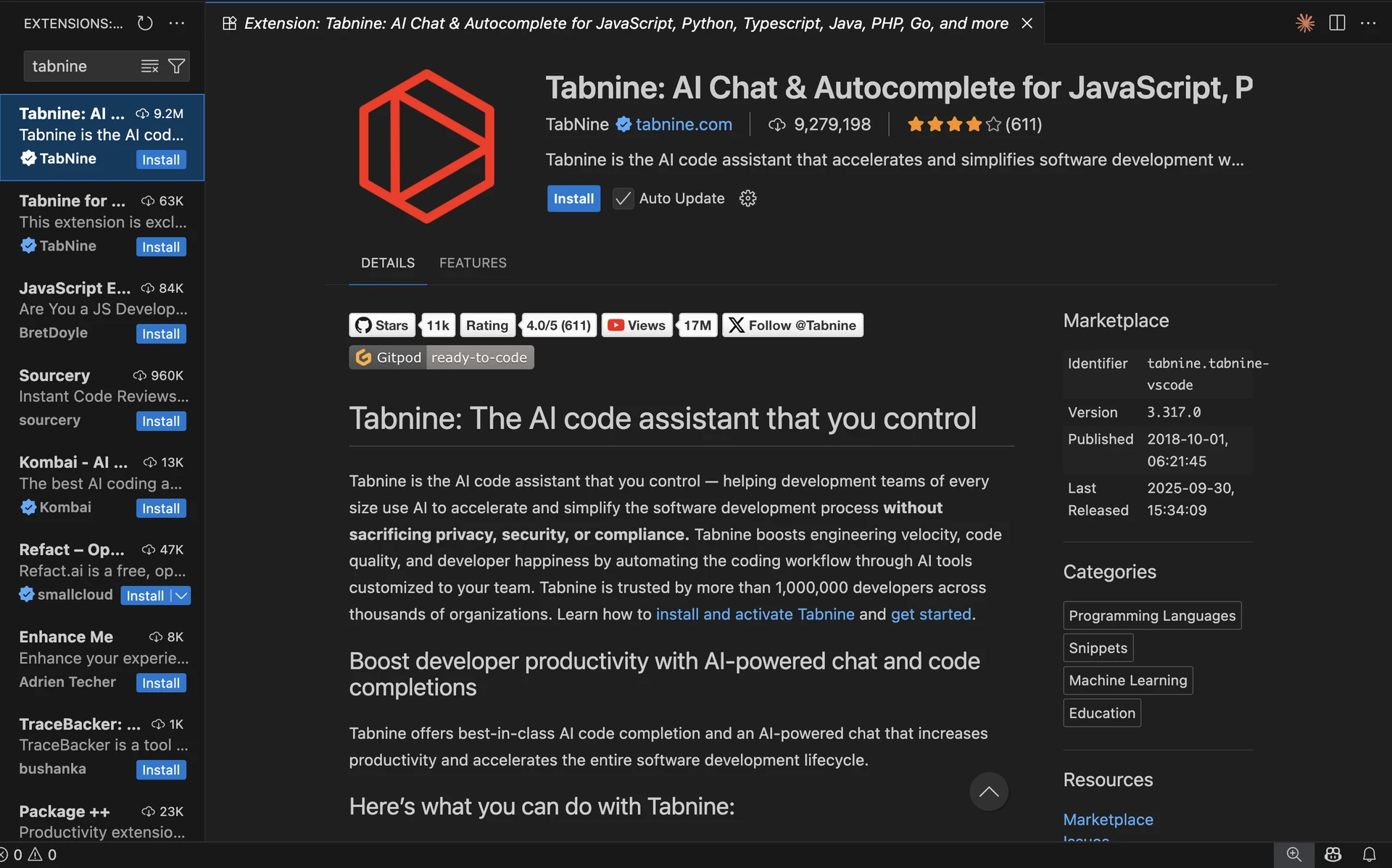 Tabnine : le partenaire de code fait pour les personnes et les entreprises qui font attention à la confidentialité