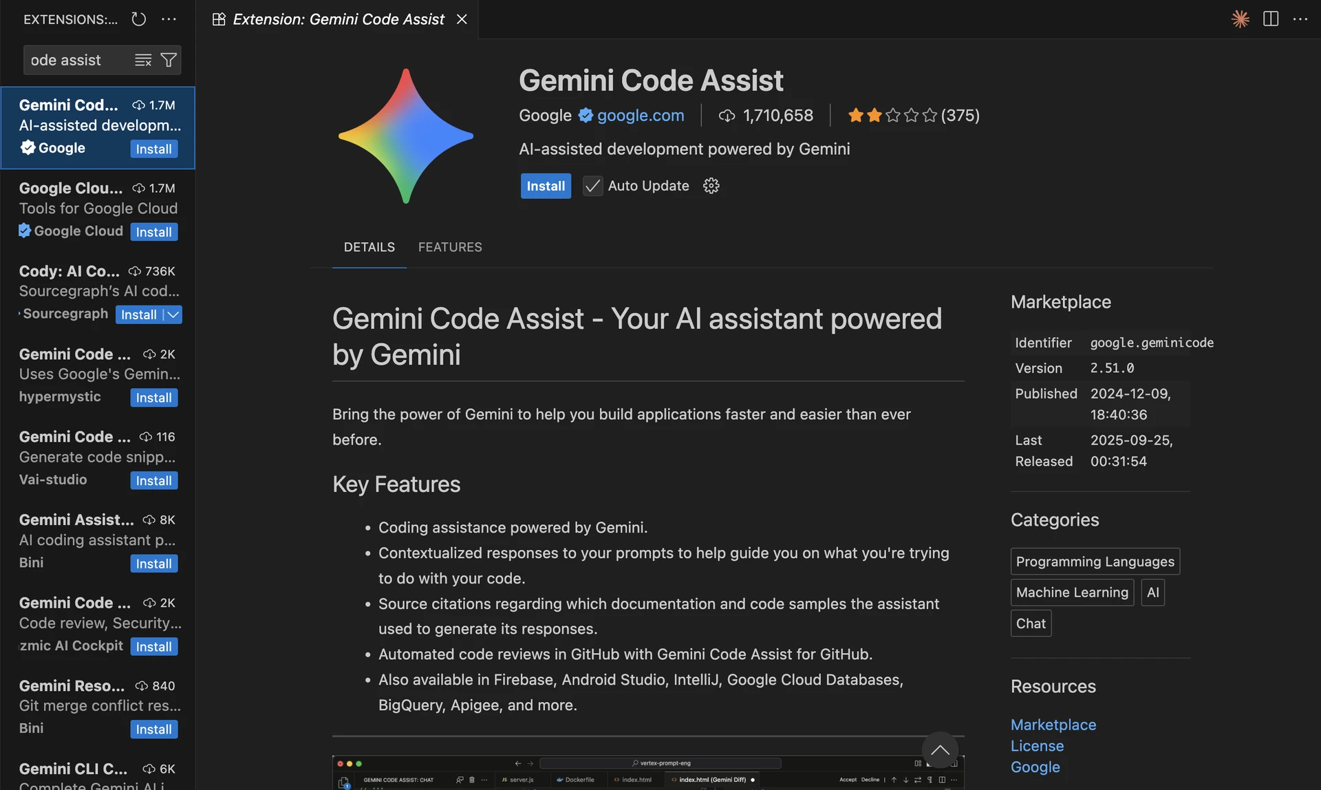 Plugin Gemini Code Assist pour Vs Code