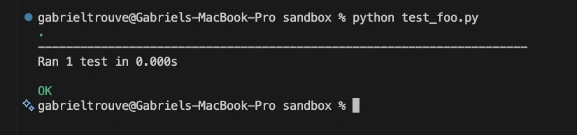 Nous allons créer un fichier dédié test_foo.py pour vérifier que la fonction se comporte bien comme prévu. Il est important de séparer votre code métier et vos tests en créant des fichiers spécifiques. On les nomme avec le préfixe test_.