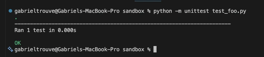 On pourrait se passer du bloc if __name__ == '__main__': unittest.main() en bas de chaque fichier de test en utilisant directement le terminal :